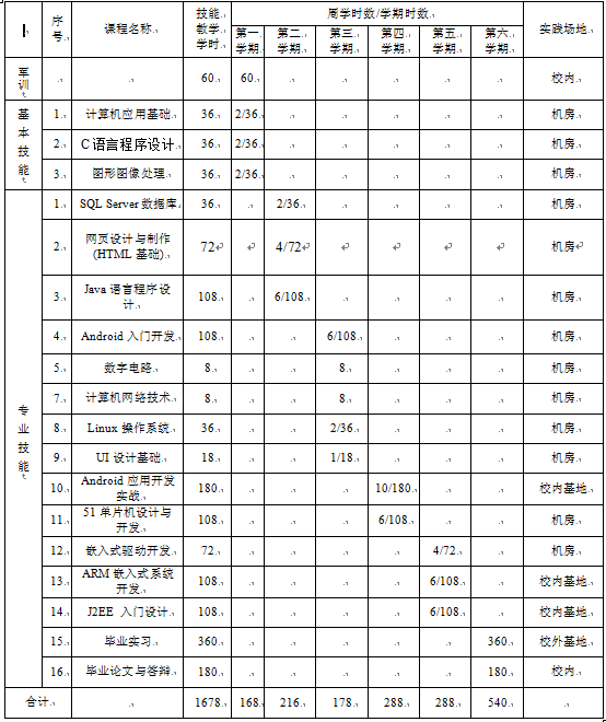 结合计算机网络技术专业校企合作情况,主要开设:《Java语言程序设计》、《Android入门开发》、《51单片机设计与开发》、《Android应用开发实战》、《嵌入式驱动开发》、《ARM嵌入式系统开发》、《Linux》等专业课程。