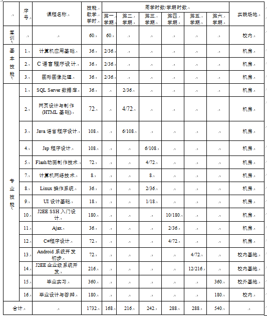 结合计算机网络技术专业校企合作情况,主要开设:《Java语言程序设计》、《JSP程序设计》、《J2EE SSH入门设计》、《J2EE企业级开发》、《Ajax》、《SQL Server》、《Linux》等专业课程。