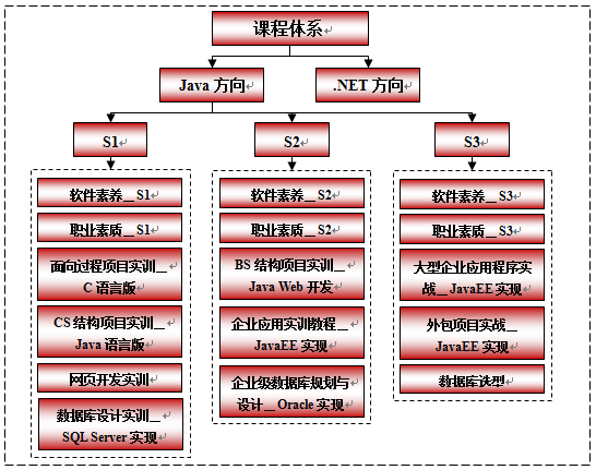 该课程以突出学生职业能力为主,以C-Java-Java Web-J2EE为主线,注重关键课程的实训环节。