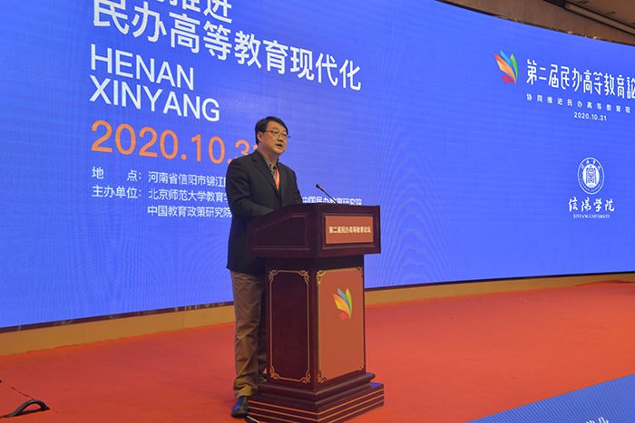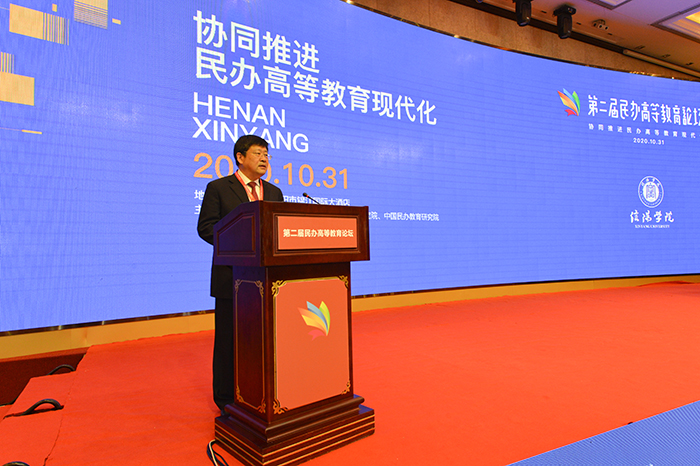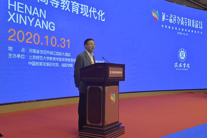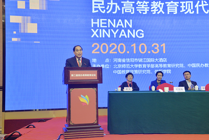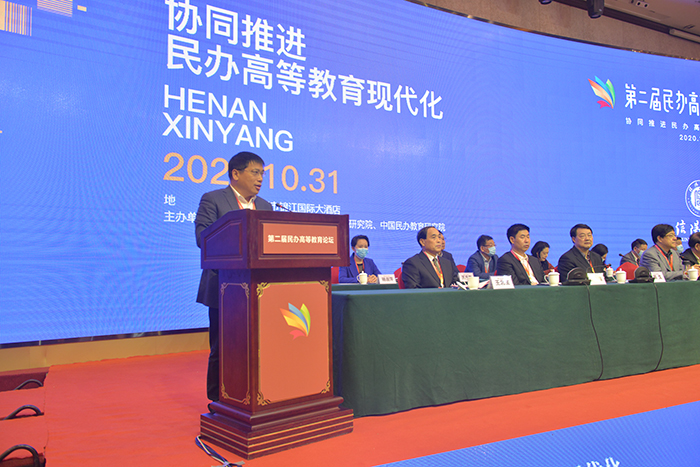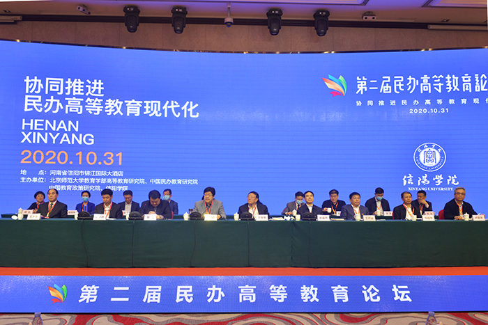 乘借党的十九届五中全会胜利召开的东风,10月30—31日,由北京师范大学教育学部高等教育研究院、中国民办教育研究院、中国教育政策研究院和信阳学院联合主办,以“协同推进民办高等教育现代化”为主题的第二届民办高等教育论坛在信阳隆重举行。