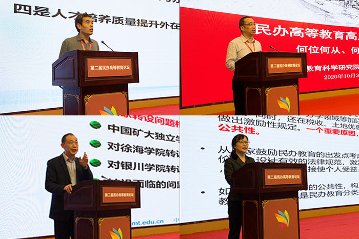 开幕式结束后,与会领导和专家围绕“民办高等教育高质量发展趋势与路径”“民办高校治理体系与治理能力现代化建设”“‘十四五’时期民办高等教育战略定位与教改探索”“新时代民办高校党的建设和德育工作创新”等主要议题,分别作主题报告和专家报告。