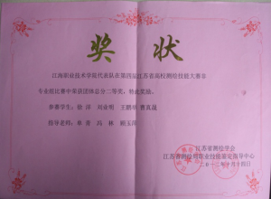 建筑工程技术专业在2012年获得江苏省高校测绘技能大赛水准测量一等奖、团体二等奖;江苏省高职院校学生技能大赛中2017年、2018年荣获“建筑工程识图”赛项二等奖在获奖的高职院校中是屈指可数的民办院校。