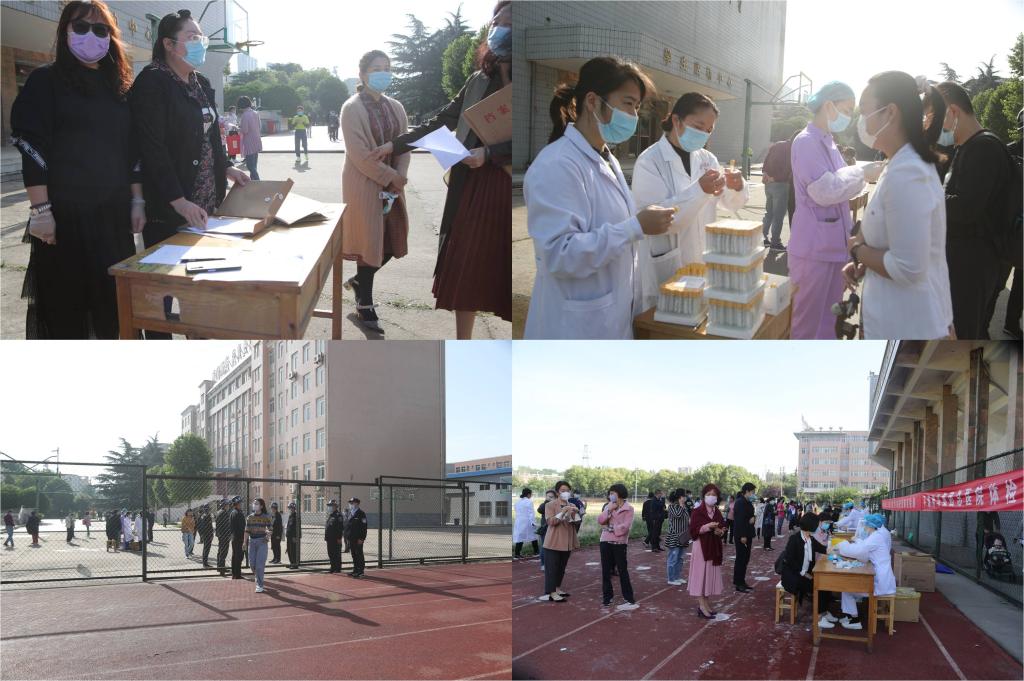 根据省疫情防控指挥部教育系统工作专班《关于加强高校师生新冠肺炎检测确保安全返校的通知》、中国平煤神马集团《关于做好2020年度集团在岗职工健康体检的通知》文件精神要求,严格把控学校开学前疫情防控关口,5月10日,我校邀请中国平煤神马集团总医院医务人员,在操场为全体教职工进行新冠肺炎检测。