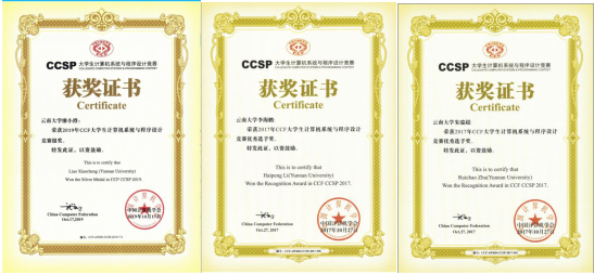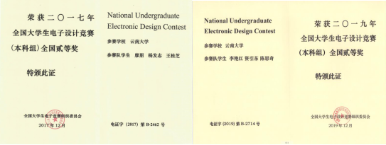 2019年全国大学生数学建模竞赛国家级二等奖6人,省级一等奖21人,二等奖24人,三等奖18人;2019年全国大学生电子设计竞赛(两年一赛)省级一等奖6人,二等奖9人,三等奖12人;2019年“汉柏杯”云南省大学生计算机设计大赛省级三等奖14人;CCF大学生计算机系统与程序设计竞赛金奖2人;2019全国大学生机器人大赛“机甲大师”比赛国家一等奖5人,国家二等奖28人;2019年美国数学建模赛H奖3人,S奖24人;2019年“大唐杯”移动通信赛省级二等奖4人;2019年第十六届“挑战杯”全国大学生课外学术科技作品竞赛国家三等奖4人,省级一等奖3人;2019年第五届中国“互联网+”大学生创新创业大赛省级银奖27人,铜奖19人,省级银奖5人。
