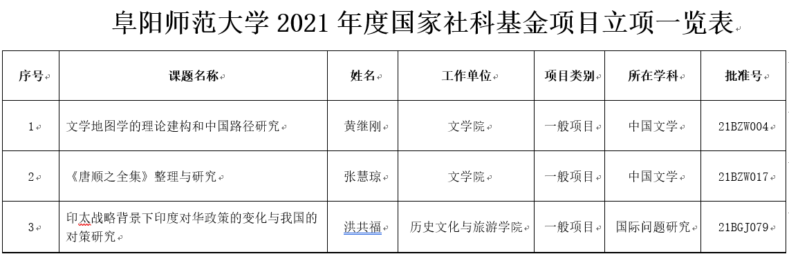 日前,2021年国家社科基金年度项目、青年项目、西部项目立项课题名单在全国哲学社会科学工作办公室网站正式公布,我校共有3项课题获立项资助,其中,文学院获批2项、历史与文化旅游学院获批1项。