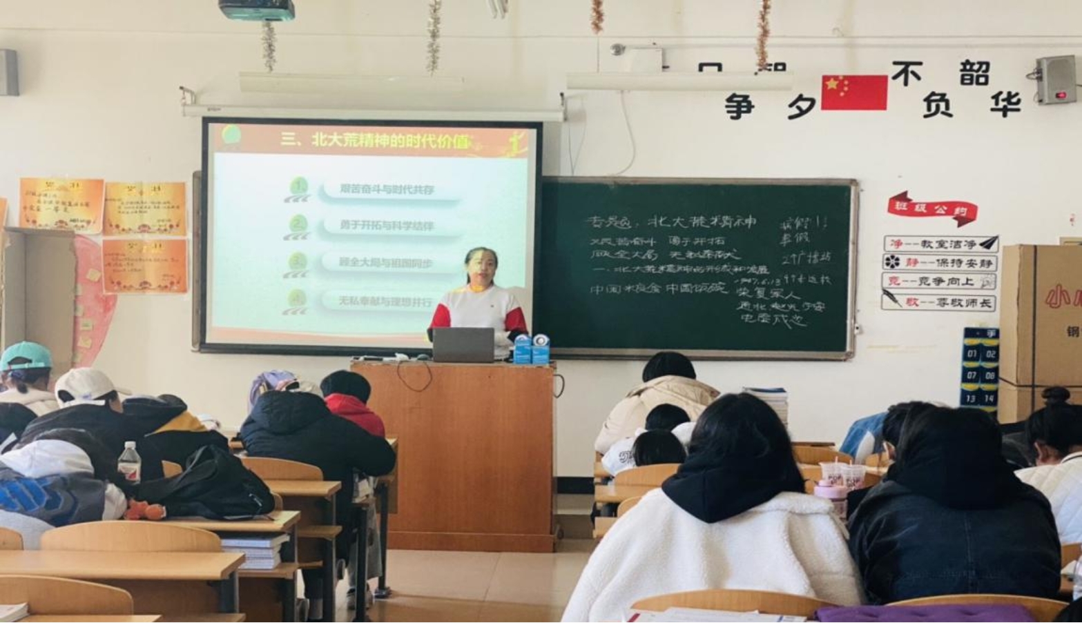北大荒精神是北大荒人攻坚克难、不断夺取胜利的思想法宝和力量源泉,是龙江“四大精神”之一,也是中国共产党人首批精神谱系的一部分,已成为中华民族的宝贵精神财富,在当今社会产生着广泛而深远的影响。为响应北大荒集团党委号召,充分发挥北大荒精神的教育引导作用,我院马克思主义学院教师积极把北大荒精神专题融入思政课日常教学中,努力做到学习好、传承好、弘扬好,充分发挥了北大荒精神育人铸魂重要作用,让学生自发自觉自愿地接受北大荒精神教育,以便更好的弘扬北大荒精神。