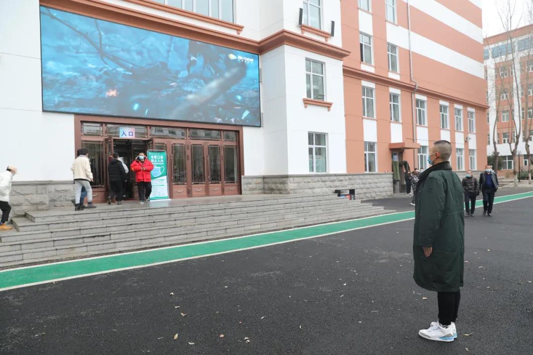 为将核酸检测工作做细做精,黑龙江旅游职业技术学院在核酸检测现场除了配齐核酸检测、道路指引等基础配备,还“升级装备”,充分利用检测现场外的LED屏幕,滚动播放了习近平总书记在纪念辛亥革命100周年大会上的重要讲话视频,以及《功勋》 、《金刚川》、《建国大业》、《建党大业》、《红海行动》、《我和我的祖国》……一批深受好评、喜闻乐见的主旋律影视剧,将思政课堂“搬”到核酸检测现场,起到了安抚学生情绪的良好作用,激励师生与新冠肺炎疫情斗争到底,潜移默化、润物细无声地进行党史学习教育,打造龙旅特色党史学习教育新课堂。
