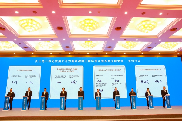 11月19日,长三角一体化发展上升为国家战略三周年浙江省系列主题活动启动仪式在浙江省人民大会堂举行。启动仪式上,10项长三角一体化重大项目签约,浙大城市学院副校长韦巍代表学校与相关单位签署了《共建城市大脑空天信息实验室战略合作协议》。