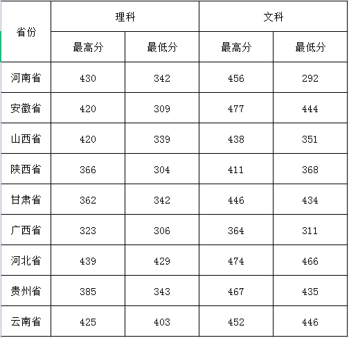 菏泽医专2020年夏季高考省外分省录取分数线