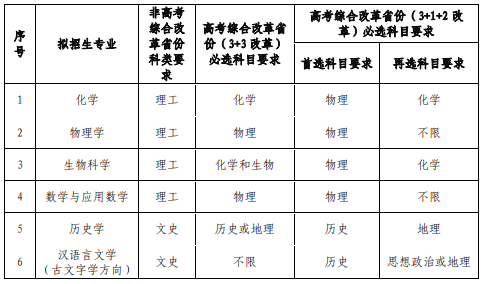 我校2022年强基计划具体招生专业及相关要求见下表,具体分省招生计划详见兰州大学强基计划报名系统。考生科类(高考综合改革省份的选考科目)须与我校相关专业要求相匹配。