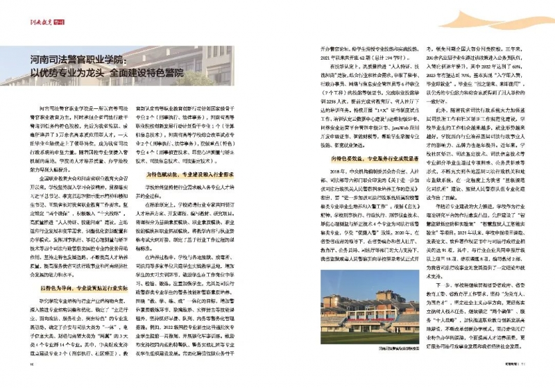 河南司法警官职业学院:以优势专业为龙头 全面建设特色警院