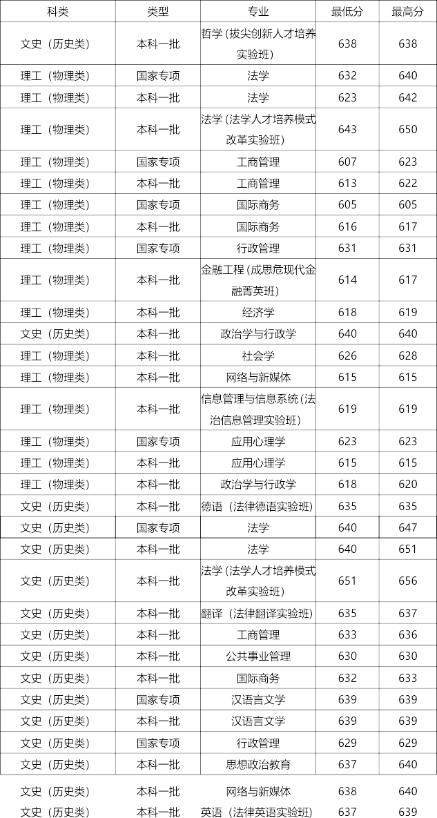 中国政法大学2023年河南省录取分数