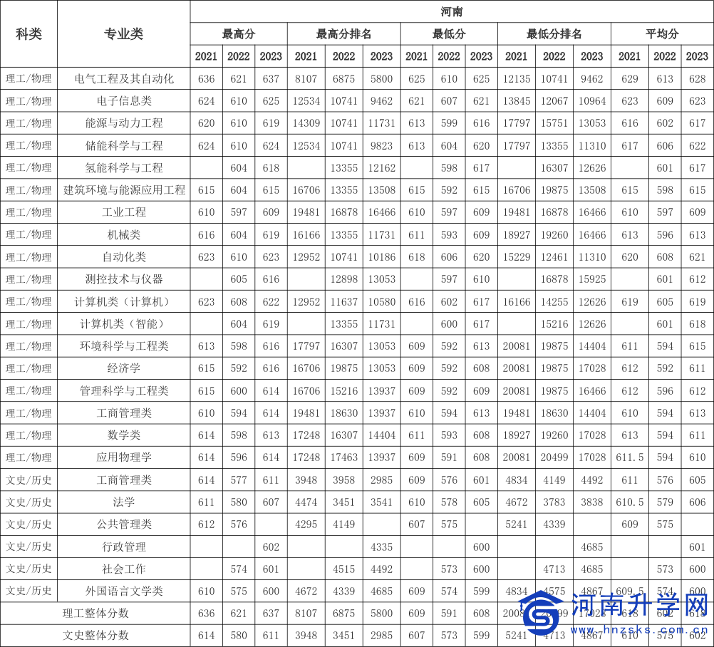 华北电力大学(保定)河南省2021-2023年普通类录取分数统计