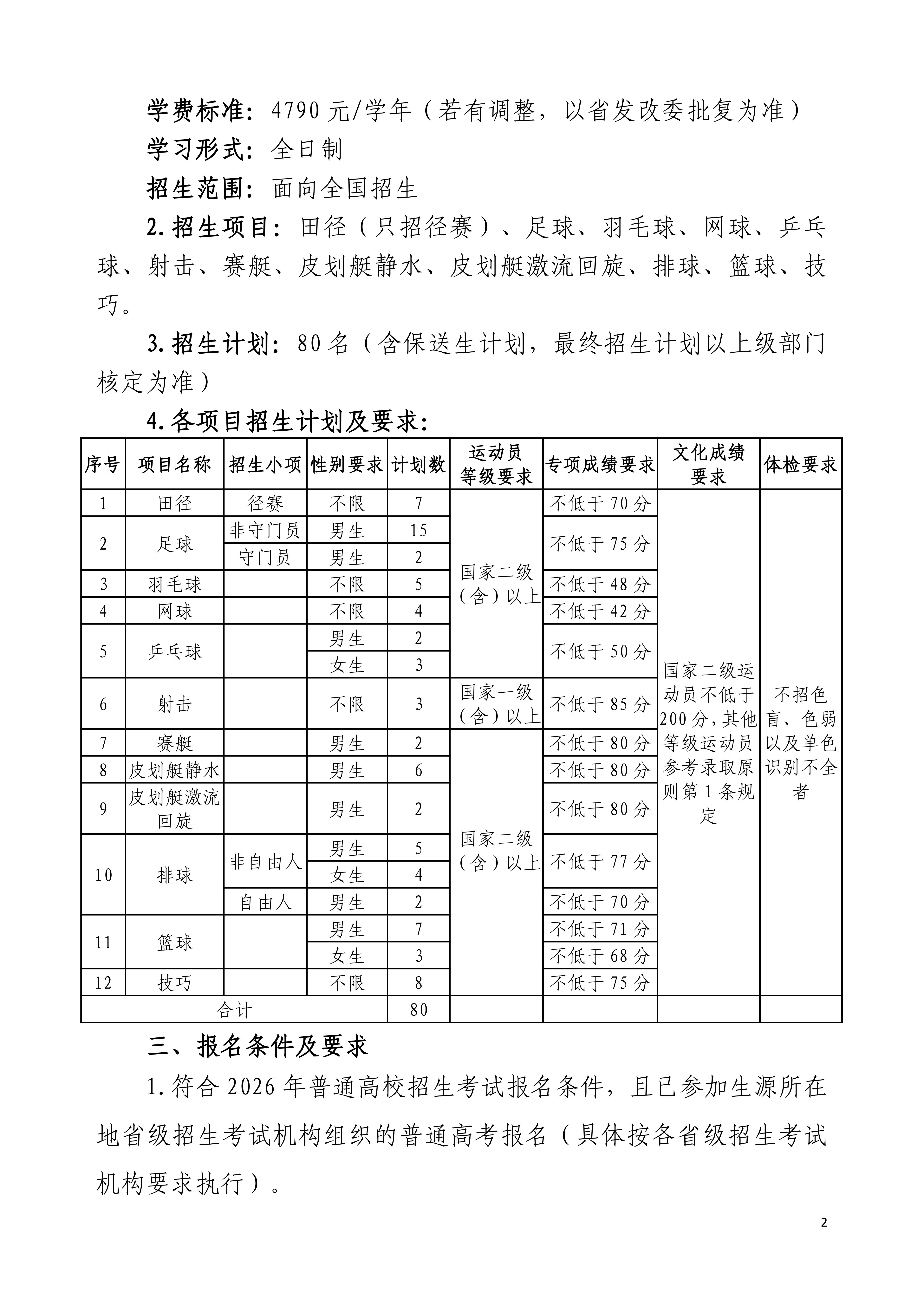 宜春学院2026年运动训练专业招生简章