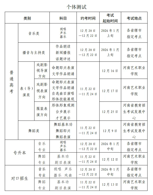 河南省2026年普通高校招生艺术类专业省级统考个体测试网上预约流程
