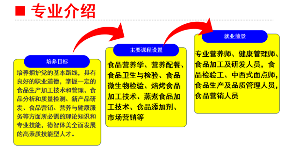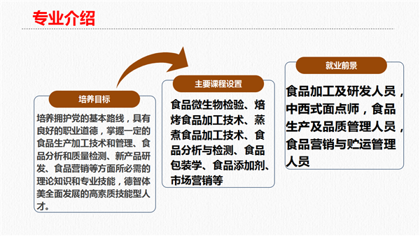 培养目标:本专业主要培养拥护党的基本路线,具有良好的职业道德,熟练掌握粮油储藏、粮油检验、仓储物流等方面所必需的理论知识和专业技能,德智体美全面发展的高素质技能型人才。
