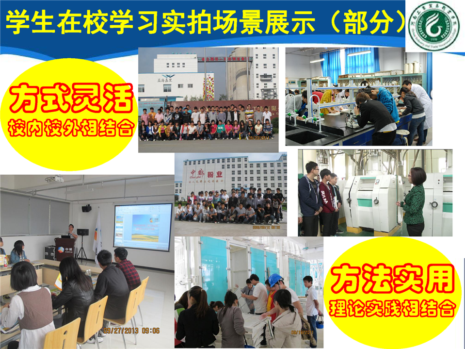 主要课程:粮油基础、粮情检测、粮油运输、粮油检验、粮油食品安全检测、市场营销等。