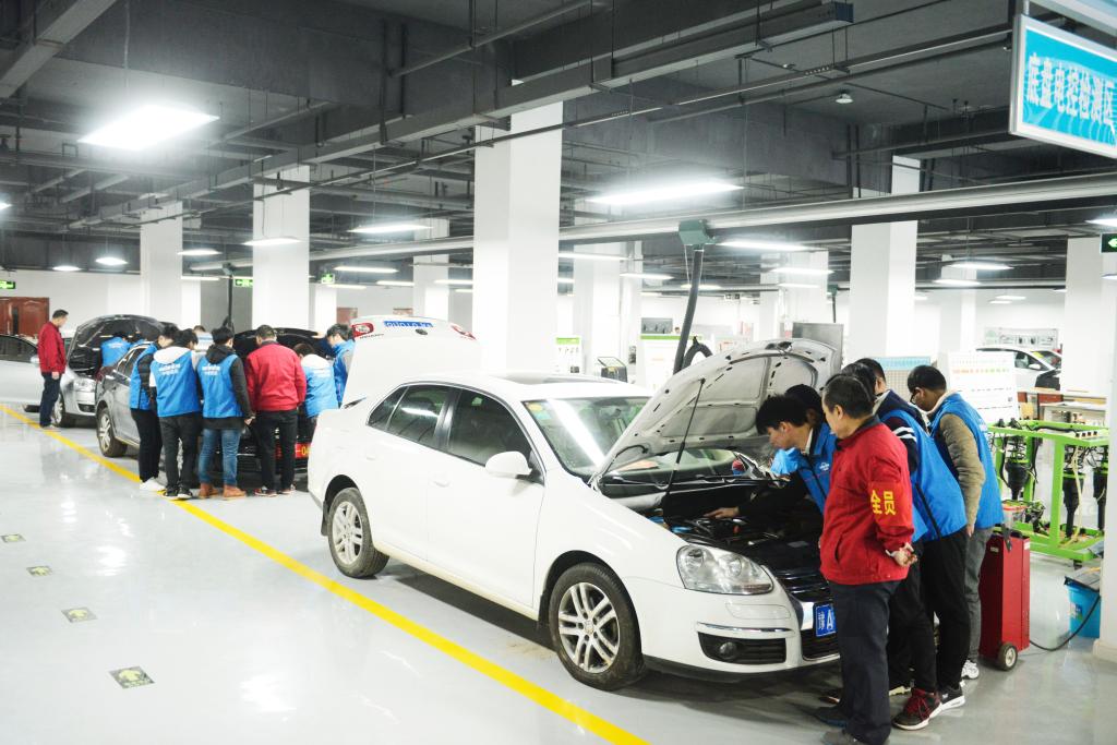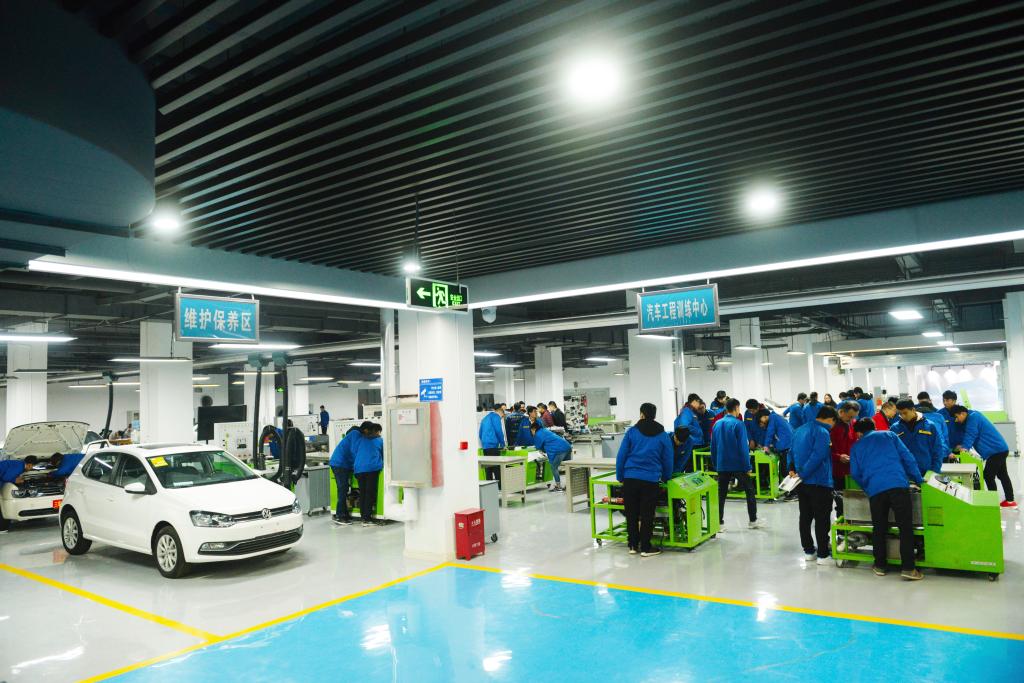 本专业校内实训室以实施生产性实训教学为目标,参照汽车售后服务企业工作场所的模式来进行规划设计,保持设备、仪器、工具的更新换代,为学生提供具有高仿真的企业工作环境与场所,并能实现教学做一体化教学的要求。目前已经建成和即将建成的校内实训基地有:汽车认识与维护保养实训室、汽车发动机机械构造与维修实训室、汽车底盘机械构造与维修实训室、新能源汽车电池、电机与电控实训室、混合动力汽车构造与维修实训室和纯电动汽车构造与维修实训室等。