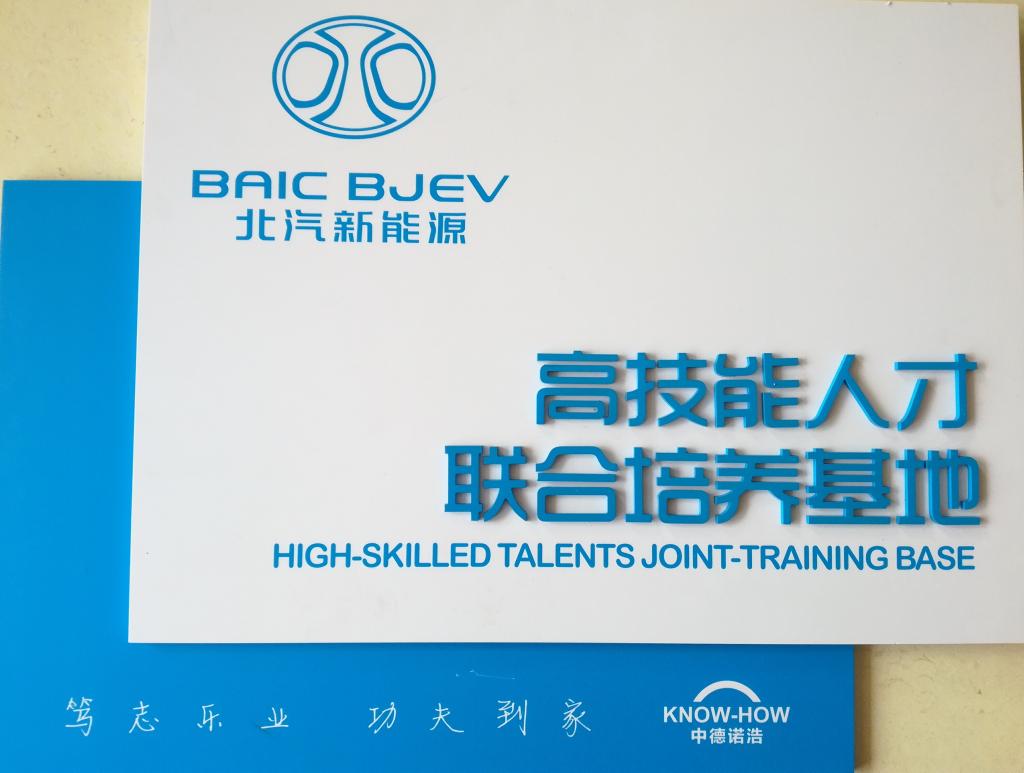 我院被北京中德诺浩和北汽新能源联合授予北汽新能源高技能人才联合培养基地,学生可享受到德国双元制优质教育和北汽新能源公司的全程培养,毕业生可择优到北汽新能源电动汽车有限公司就业。