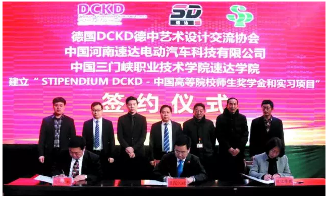 我院与德国DCKD德中艺术设计交流协会、河南速达电动汽车科技有限公司签订了“Stipendium DCKD-中国高等院校师生奖学金和实习项目”的合作协议,优秀学生有机会到德国参加交流实习活动。