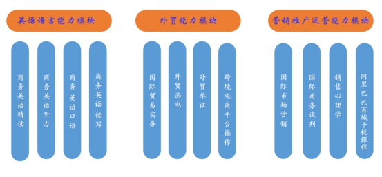 商务英语专业服务于“一带一路”国家战略,主要面向对外贸易和跨境电商就业领域,培养具有扎实的英语语言基础和系统的国际商贸管理知识,具有较强的实践操作技能,从事涉外销售、营销、翻译、管理、文秘等工作的高端英语专门人才。