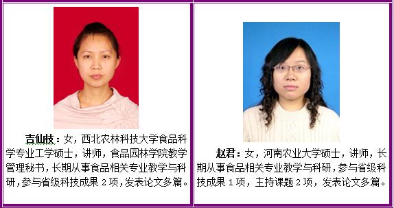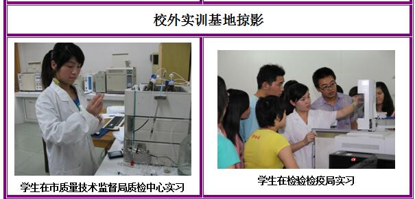 师资队伍:本专业现有专、兼职教师10人。其中,高级职称5人,中级职称5人,博士1人,硕士5人,省教育厅学术技术带头人1人,市优秀教师4名,双师型教师7人。同时,外聘市食品药品监督管理局、市质量技术监督局、市出入境检验检疫局等单位相关技术专家,共同开展人才培养。