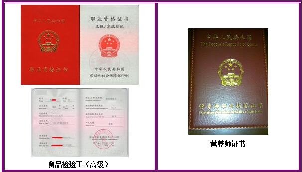 本专业学生可获取食品检验员、食品安全师、营养配餐员、营养师、品酒师、调酒师、产品品质控制管理人员(包含ISO内审员、HACCP内审员)等职业资格证书。
