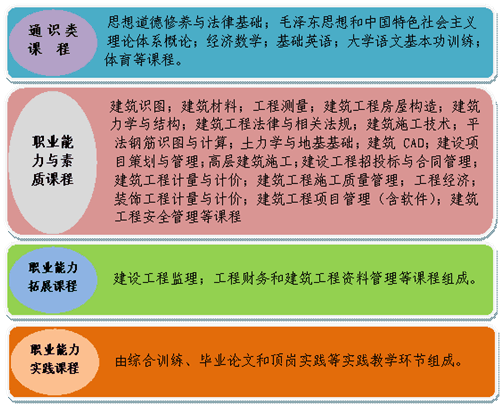 本专业培养德、智、体、美全面发展,能够适应现代化建设需要,从事建设工程项目前期决策、工程招标代理、工程投标报价、建筑工程施工、工程质量控制、建筑工程计量与计价、工程造价控制、信息管理和安全管理等工作,以工程项目管理为主线,熟练掌握建筑施工技术和建筑工程经济等基本专业知识,具备施工管理技能,能在国内外工程建设领域从事项目施工管理工作的高级技术技能人才。