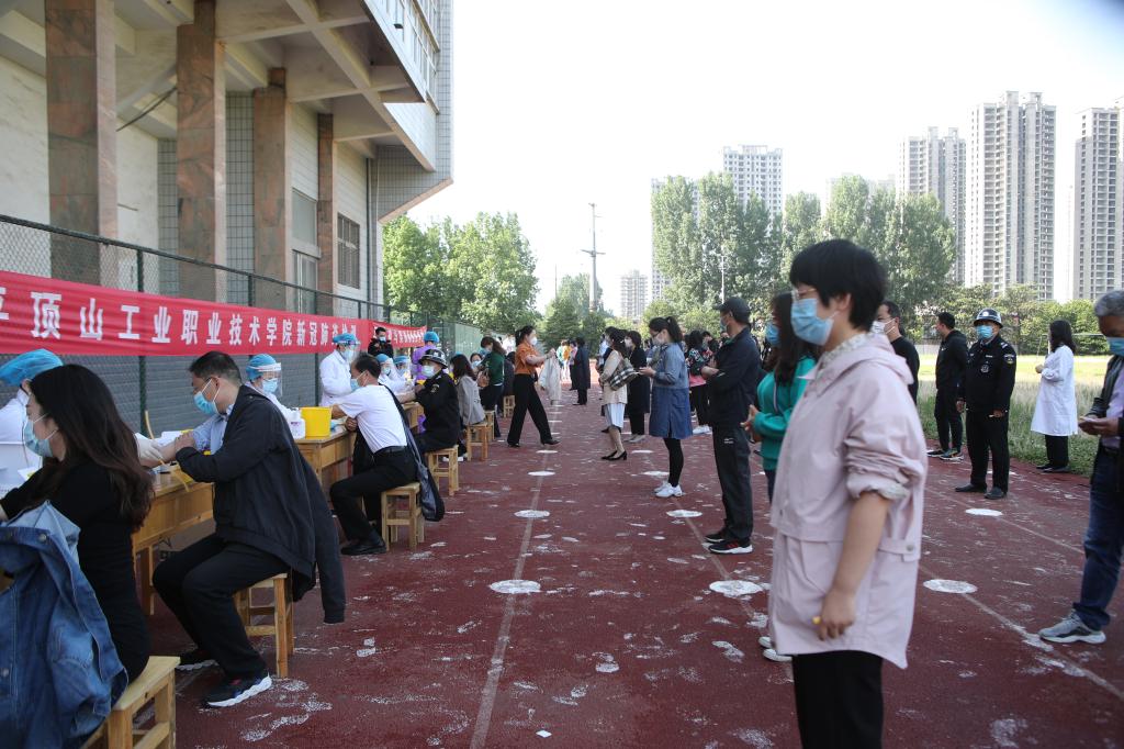 根据省疫情防控指挥部教育系统工作专班《关于加强高校师生新冠肺炎检测确保安全返校的通知》、中国平煤神马集团《关于做好2020年度集团在岗职工健康体检的通知》文件精神要求,严格把控学校开学前疫情防控关口,5月10日,我校邀请中国平煤神马集团总医院医务人员,在操场为全体教职工进行新冠肺炎检测。