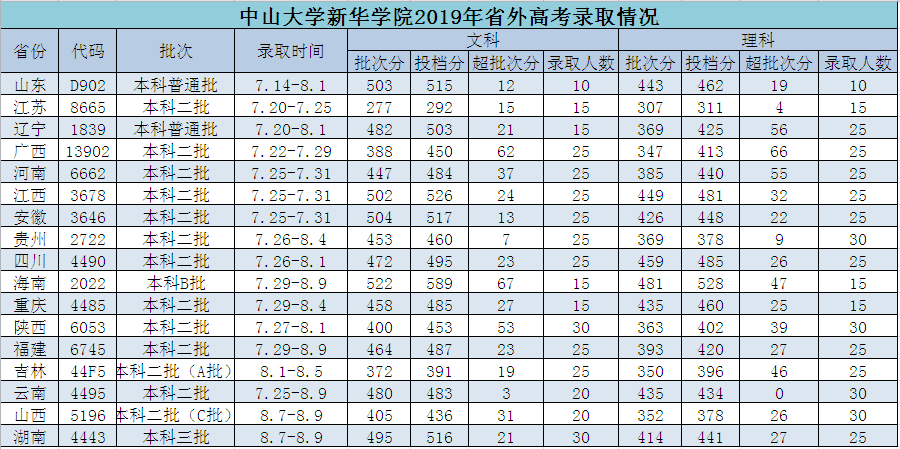 广州新华学院2019年招生录取分数统计表(其他省份)