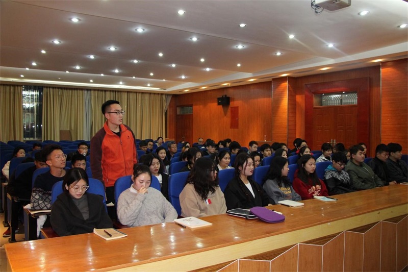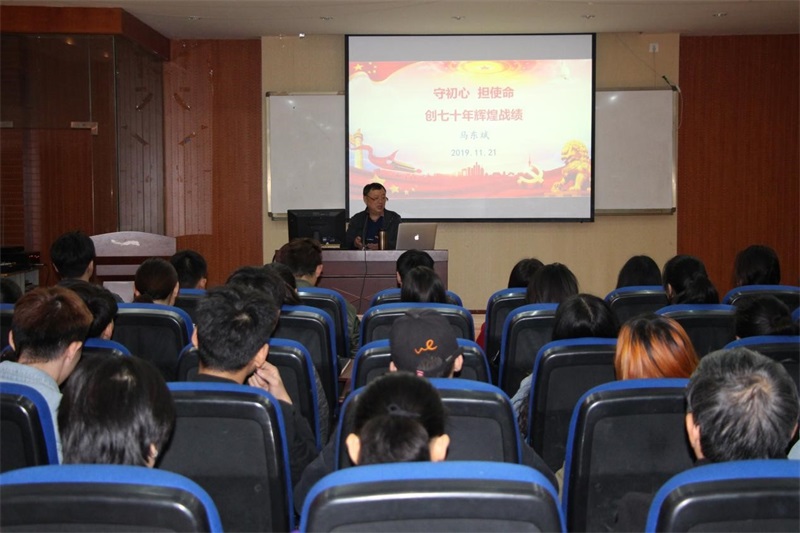 马东斌从“历尽艰辛,成立新中国,中华民族站起来”“勇于开拓,改革开放,中华民族富起来”“新时代新征程,中华民族强起来”“70年伟大历程的深刻启示”四个方面深入浅出进行讲解。他结合自身经历,和同学们一起回顾了新中国70年辉煌成就,生动再现了党史、国史和改革开放史,并希望大学生要弘扬爱国主义精神,做有理想、有信仰的人;做努力刻苦、勤奋好学的人;做脚踏实地、真诚实在的人;做互帮互学、团结友爱的人;做遵纪守法、严于自律的人;做品行端正、懂得感恩的人。