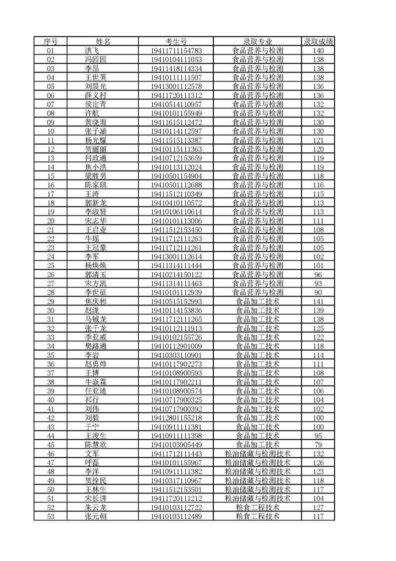 河南工业贸易职业学院2019年高职扩招单独考试招生录取名单
