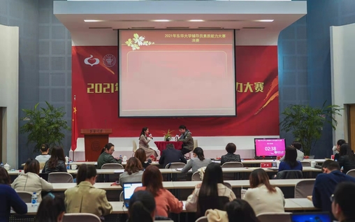 为进一步提高我校辅导员的理论水平与专业素养,提升辅导员队伍核心素质能力,促进辅导员队伍职业化、专业化发展,2021年东华大学辅导员素质能力大赛日前在松江校区圆满落幕。党委副书记刘淑慧、上海市教委德育处和上海市教育科学研究院相关领导,兄弟高校学工部长、我校相关职能部门负责人、马克思主义理论领域专家、全国高校辅导员素质能力大赛一等奖获得者代表等担任决赛评委。