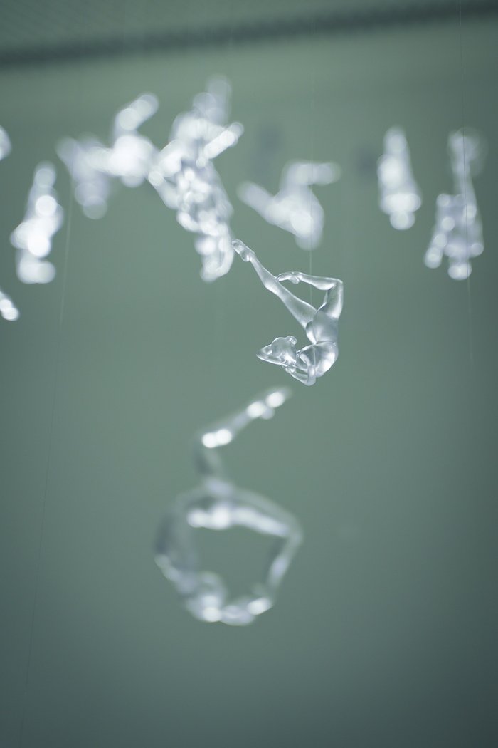 空中悬挂的模型展现了艺术家Aly Rose和Paul Siegel从2010年到2016年设计的150个独特舞姿,这是该空中舞表演的编舞基础。今年夏天,上纽大的学生们邀请三位专业空中舞者根据演出中的编舞顺序和舞蹈动作实地表演,并将排演过程拍摄、制作成影像,在展览中循环播放。