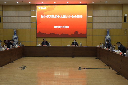 11月12日上午,校党委理论学习中心组传达学习党的十九届六中全会精神。校党委书记姚冠新主持学习会并讲话,中心组全体成员参加了学习会。