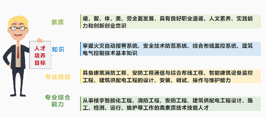 发展就业岗位:建筑智能化工程项目经理,智能楼宇管理师。