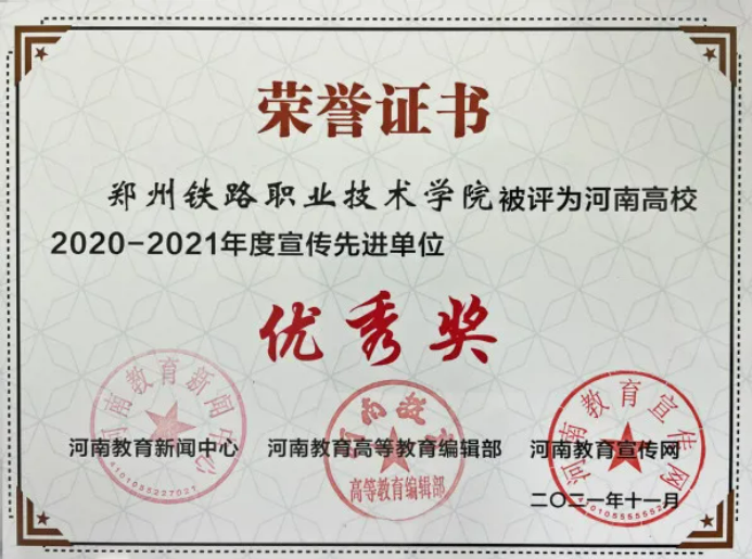 近日,河南省教育新闻中心公布河南高校2020—2021年度宣传先进单位、优秀通讯员、优秀新闻作品评选结果。我校荣获“河南高校2020—2021年度宣传先进单位”。