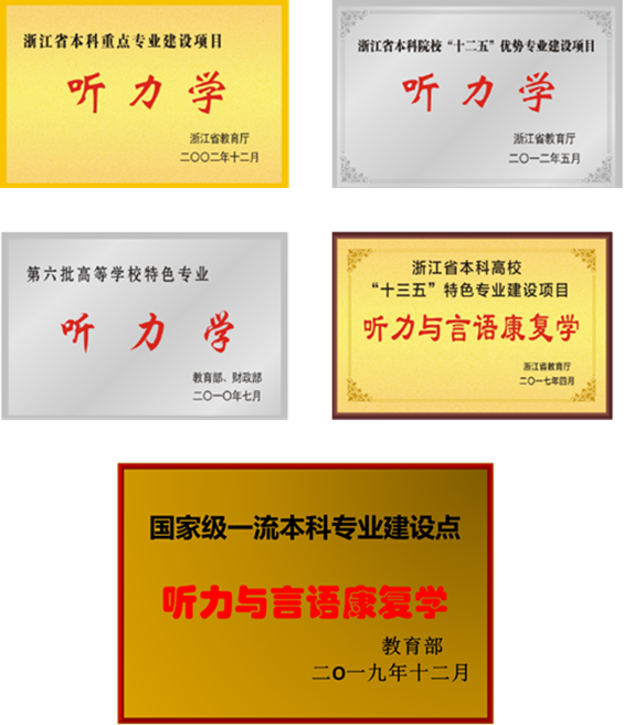 听力与言语康复学专业创办于2001年,是全国最早开设的听力学高等教育本科专业,以“产教研融合,校院企协同,培养听力与言语康复行业精英”为办学特色,迄今已培养全国规模最大的听力学人才1500余名,被誉为“听力学的黄埔军校”。依托医学技术省一流学科,拥有全国优秀教师1人,浙江省优秀教师2人,享受国务院津贴专家1人,特聘国家973首席科学家1人,专业教师21人,其中高级职称比例占52%,博士学位比例占40%,拥有听力与言语康复浙江省“十三五”重点建设实验教学示范中心。专业现为英国首相行动计划项目合作单位、解放军耳鼻喉研究所听力师人才联合培养基地、国家助听器验配师职业技能鉴定基地,现与美国斯达克、丹麦奥迪康、德国麦科、杭州惠耳等听力知名企业及英国南安普顿大学、卡迪夫大学联合开展实验室共建、人才联合培养、海外访学项目等合作。