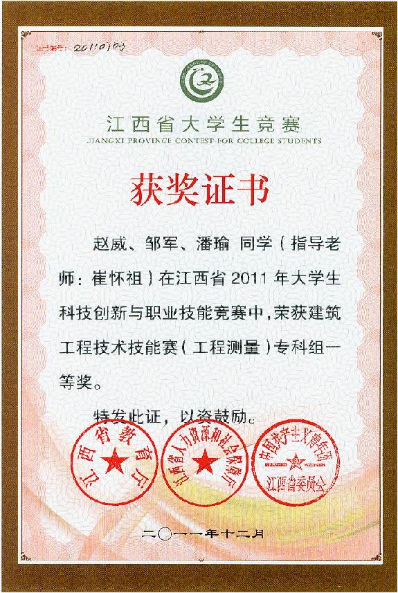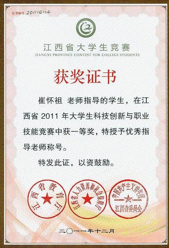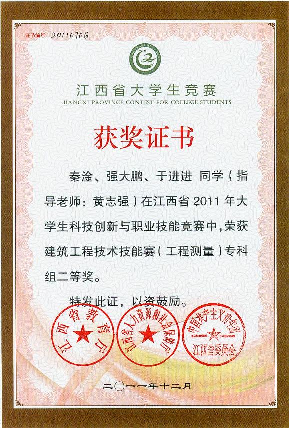 1、在由江西省教育厅、江西省人力资源和社会保障厅、共青团江西省委主办的全省科技创新技能大赛中荣获团体一等奖