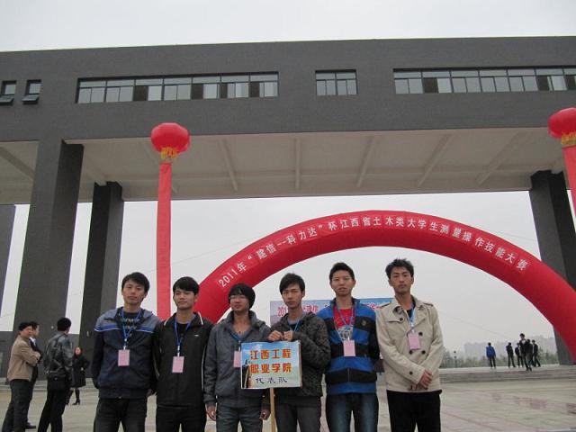 2、09建筑工程技术专业(一)班的邹军、赵威、潘瑜三人组成的测量小组荣获“工程测量”团体一等奖