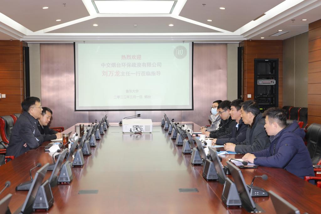 3月1日,中交烟台环保疏浚有限公司主任刘万龙一行来我校交流洽谈,校长王庆教授出席会议并讲话,学校科学技术处、服务地方办公室相关负责人参加洽谈。