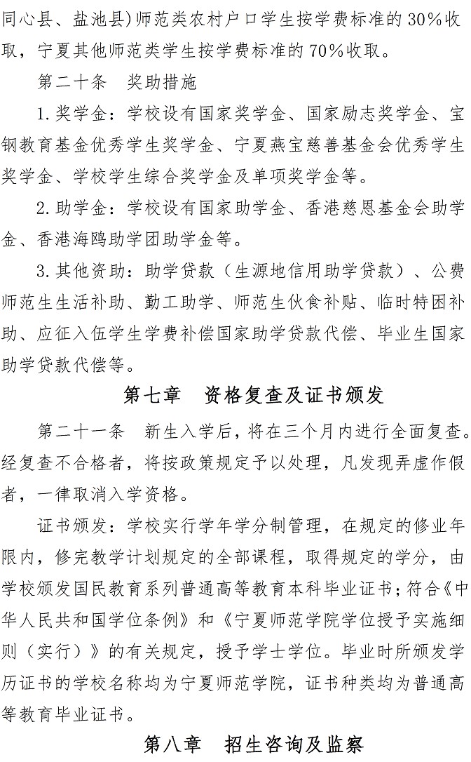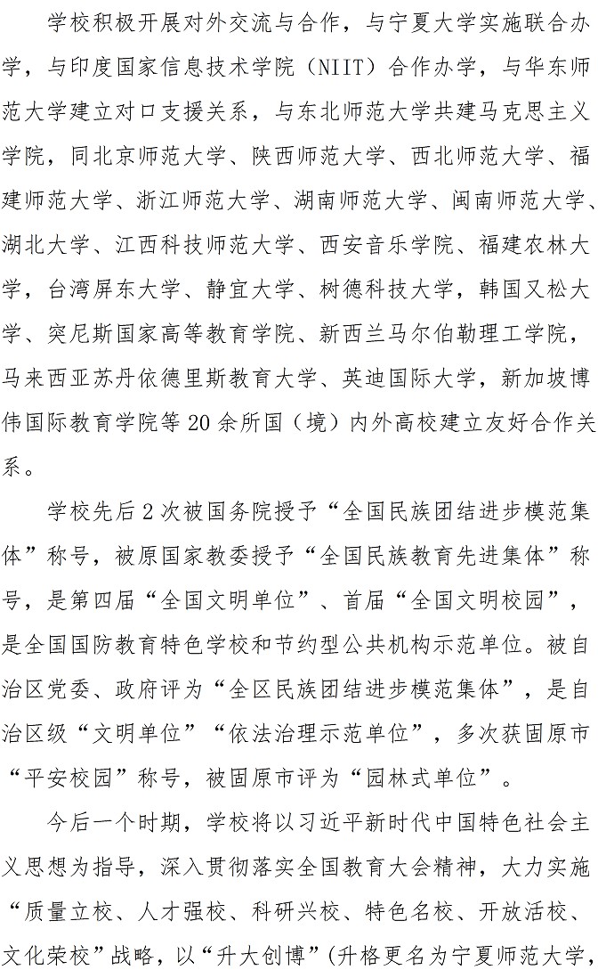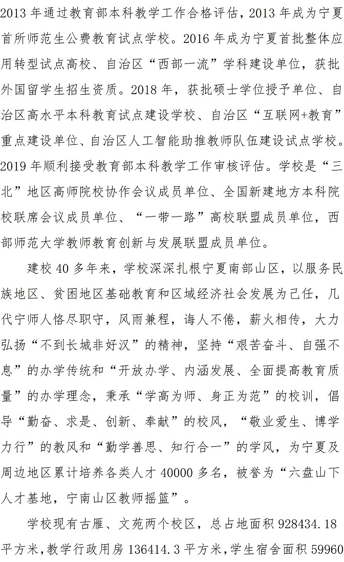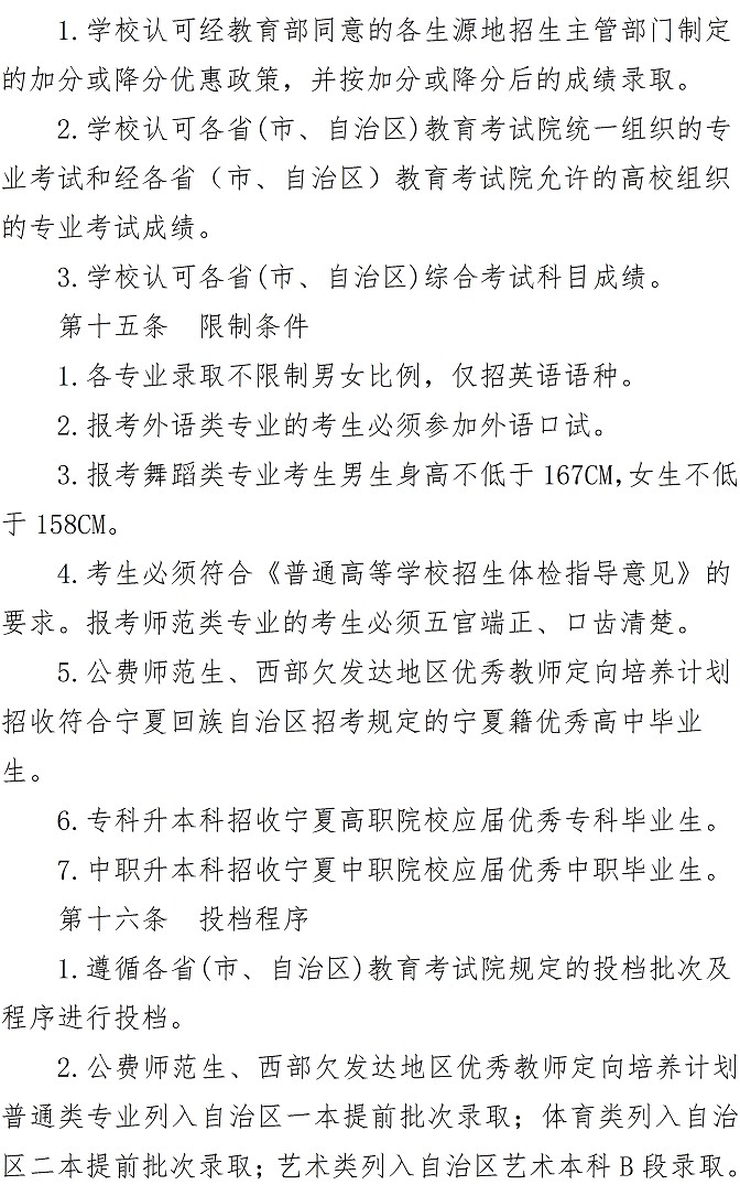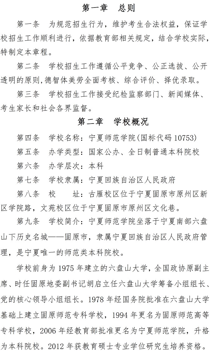 宁夏师范学院2021年本科招生章程