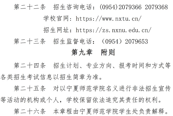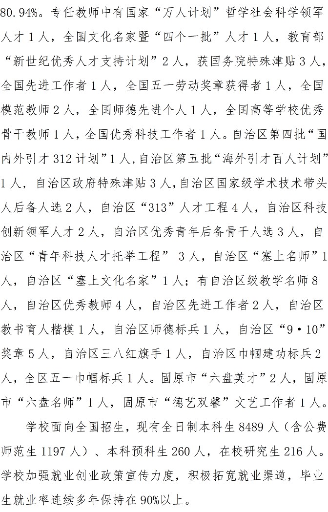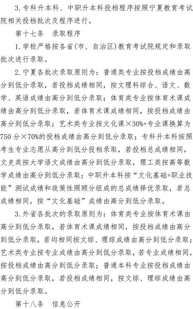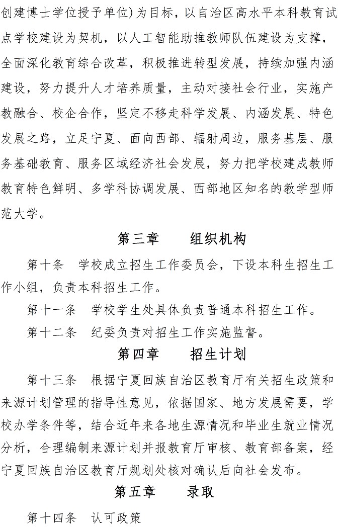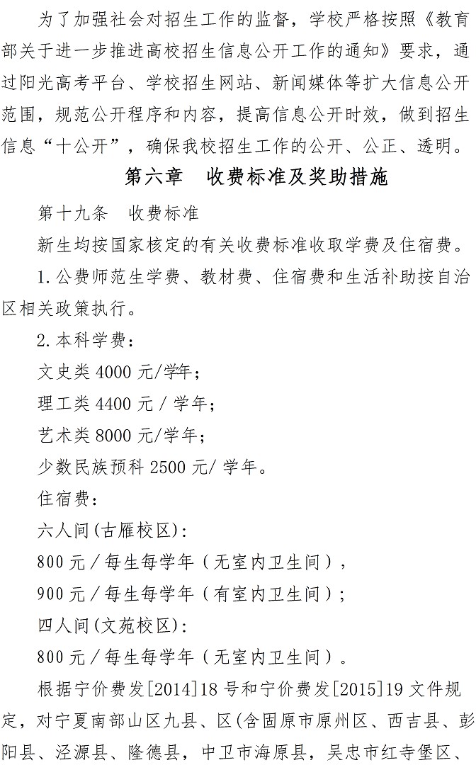 宁夏师范学院2021年本科招生章程