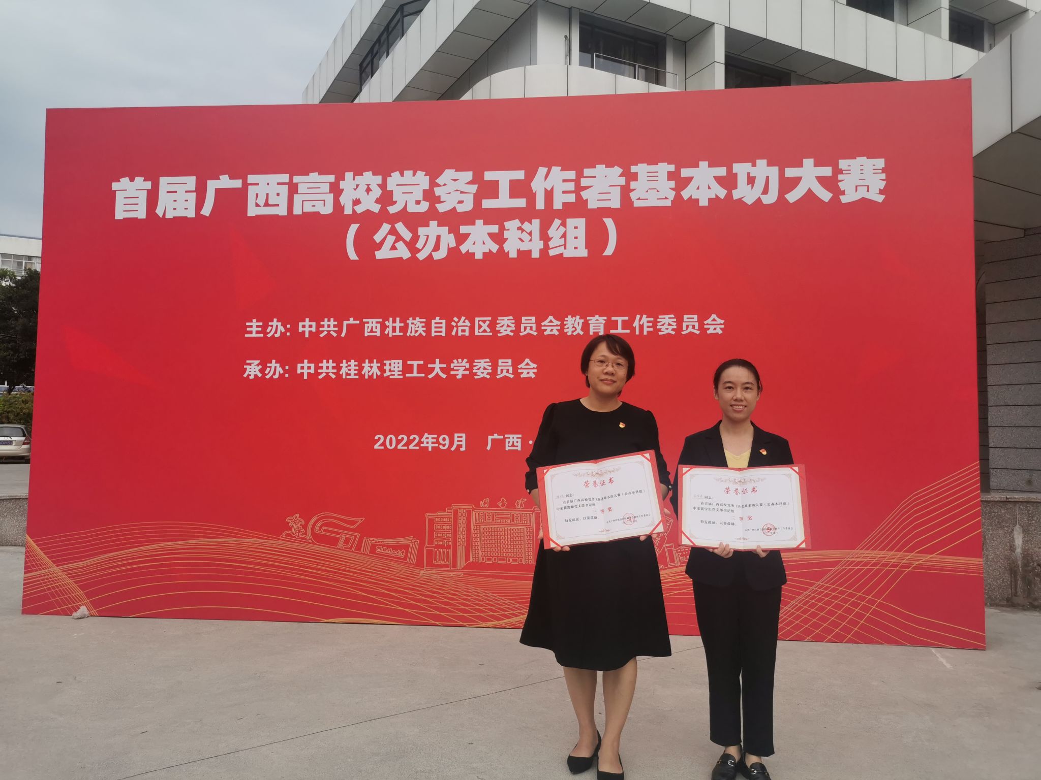 近日,自治区党委教育工委举办的首届广西高校党务工作者基本功大赛(公办本科组)在桂林举行。经过激烈角逐,广西民族大学选派的2名选手均获佳绩。民族学与社会学学院历史学教工党支部书记滕兰花获教师党支部书记组三等奖,政治与公共管理学院本科生第二党支部书记农植媚获学生党支部书记组三等奖。