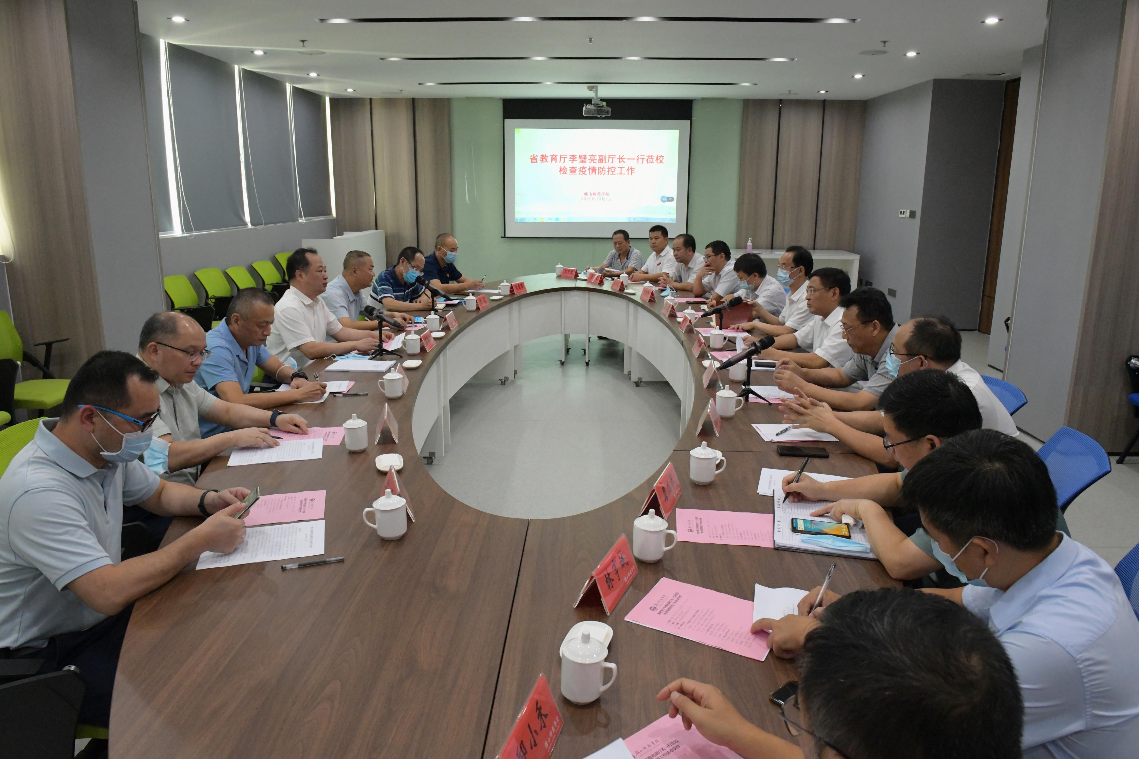 潮州市教育局局长蔡益雄和我校党委办公室、学校办公室、学校疫情防控工作办公室、教务部、基建后勤部、安全保卫部、学生工作部、资产管理部、门诊部等部门负责人参加检查活动。(摄影:何文辉)