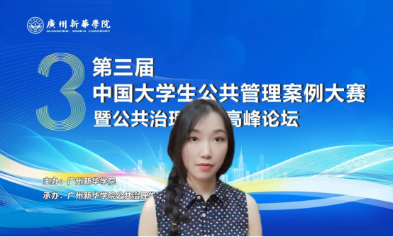 政协委员、广州新华学院董事会董事、校长助理刘婉莉出席了高峰论坛并致辞。她代表广州新华学院对莅临本次论坛的各位专家学者、表示热烈的欢迎和衷心的感谢,希望各位专家学者在研讨会上畅所欲言,交流和分享公共治理前沿的研究成果,为促进国家治理体系和治理能力现代化贡献智慧。