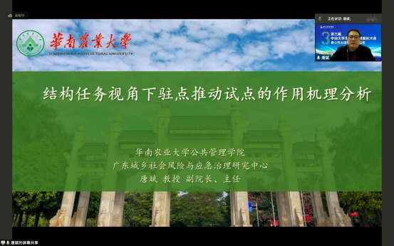 华南农业大学唐斌教授以“结构任务视角下驻点推动试点的作用机理分析”为题,分析了基层治理的试点效果问题,深度探讨了驻点与试点的关系,利用扎根理论归纳出“制度型链接”“目标型链接”与“资源型链接”三种链接关系,并在此基础上建立了驻点帮扶与政策试点关系的链接模型。