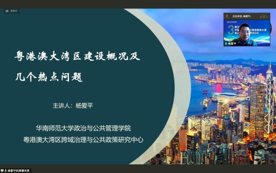 华南师范大学杨爱平教授围绕建设新进展、政府责任主体、香港角色与澳门角色四个部分,发表了题为“粤港澳大湾区发展概况及几个热点问题”的演讲报告。
