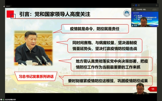 华南理工大学文宏教授华南理工大学作了“重大突发公共卫生事件的应急处置与管理优化”主题演讲。他从城市应急管理属性、城市治理逻辑、城市应急管理路径三个方面展开讨论。