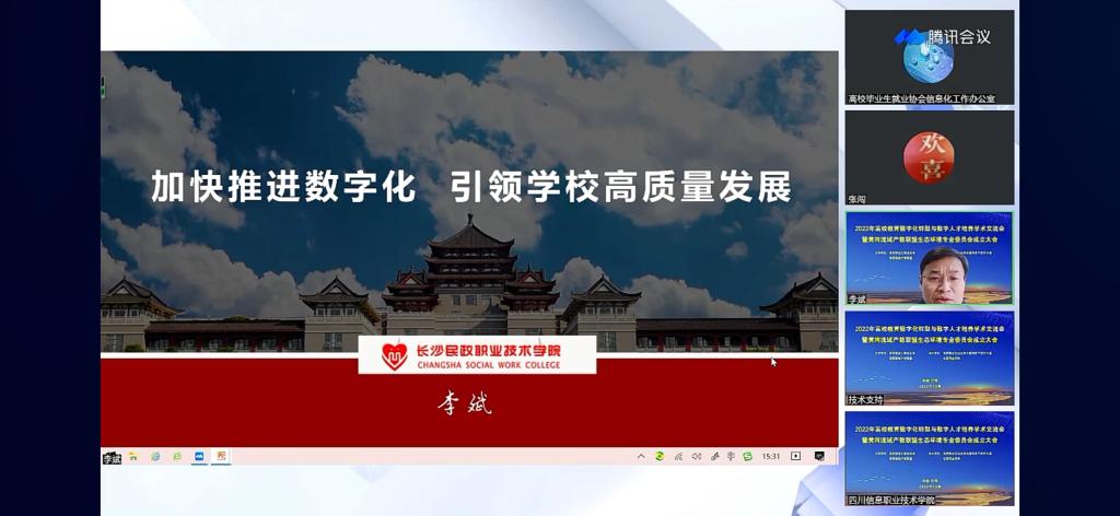 我校党委书记李斌受邀参加并作了题为“加快推进数字化,引领学校高质量发展”的专题报告。李斌通过解读《关于深化现代职业教育体系建设改革的意见》《“十四五”数字经济发展规划》等文件精神,结合我校在数字化转型与数字人才培养发展过程中的做法,通过案例的例举方式从四个方面分别进行了详细的介绍:一是专业建设数字化升级改造;二是师生数字化素养能力提升;三是校园建设数字化提质转型;四是应用研发数字化复合创新。最后,李斌谈到我校注重发挥综合院校优势聚焦办学特色创新,打造技术技能创新服务平台,应用研发平台支撑科技研发创新,以重点打造“五智库、五平台”为措施,加快学校数字化建设和发展,努力为国家培养高素质数字化技术技能人才。